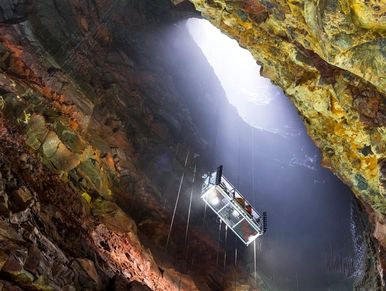 Descend into the heart of a dormant volcano on this once-in-a-lifetime Icelandic adventure! 🌋✨ After a scenic hike across lava fields, you’ll enter Þríhnúkagígur Volcano, the only place on Earth where you can explore a magma chamber from the inside. A lift lowers you 400 feet down into a vast, color-streaked cavern where molten rock once flowed. It’s an unforgettable journey into Iceland’s fiery past—perfect for true adventurers!